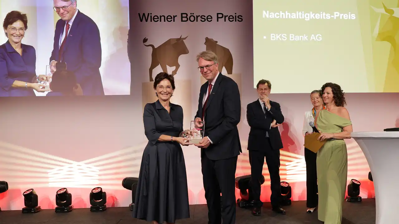 Bereits zum vierten Mal wurde die BKS Bank mit dem VÖNIX-Nachhaltigkeitspreis der Wiener Börse ausgezeichnet. Der Preis würdigt das umfassende Engagement des Instituts für nachhaltiges und verantwortungsvolles Wirtschaften.