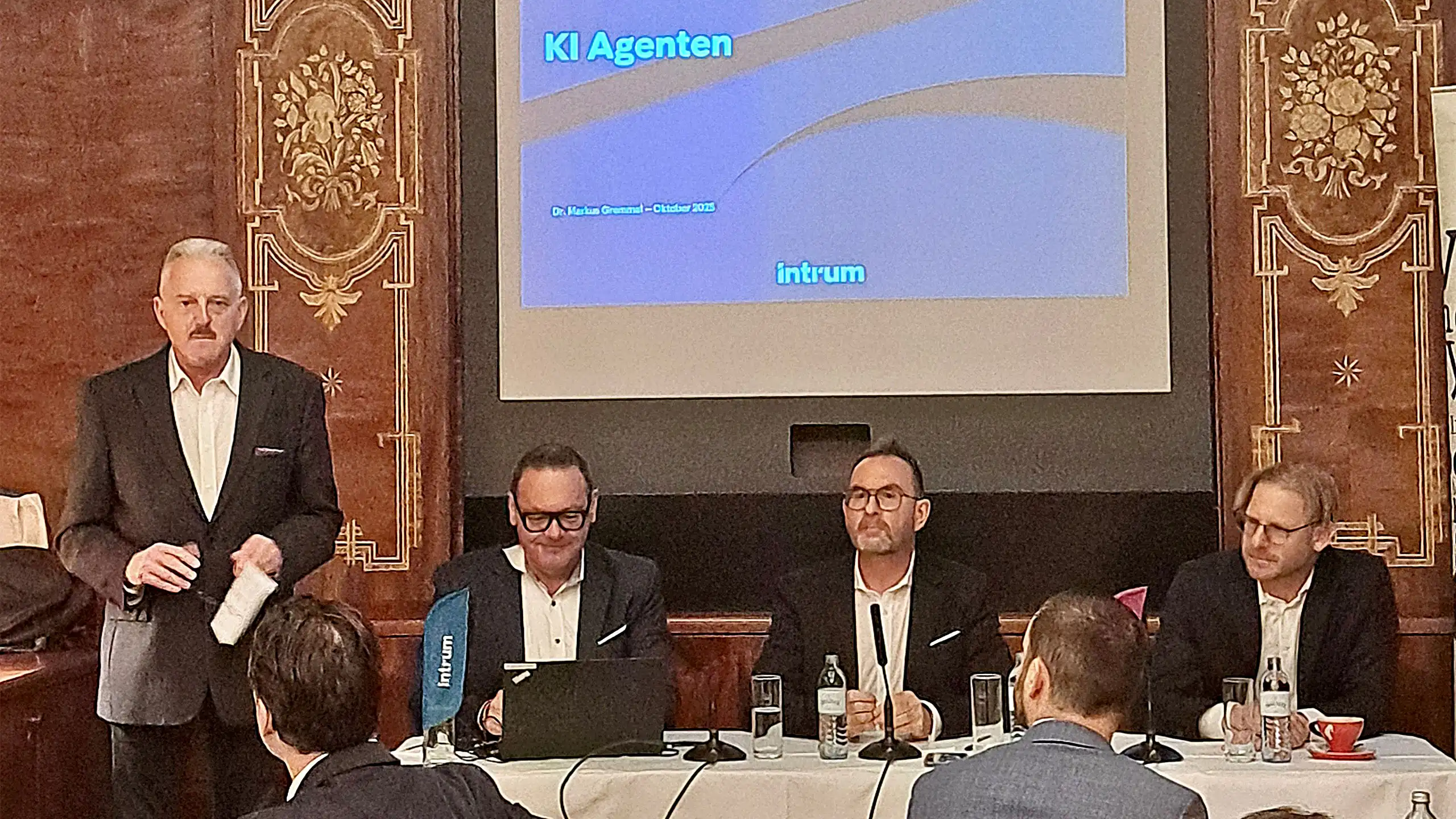 Beim Financial Breakfast vom FMVÖ (Finanz-Marketing Verband Österreich) am 15. Oktober 2025 drehte sich alles um den praktischen Einsatz von AI-Agenten im Forderungsmanagement. Rund 40 Teilnehmer:innen diskutierten mit Expert:innen von Intrum über aktuelle Anwendungen, Chancen und Veränderungen in der Finanzbranche.